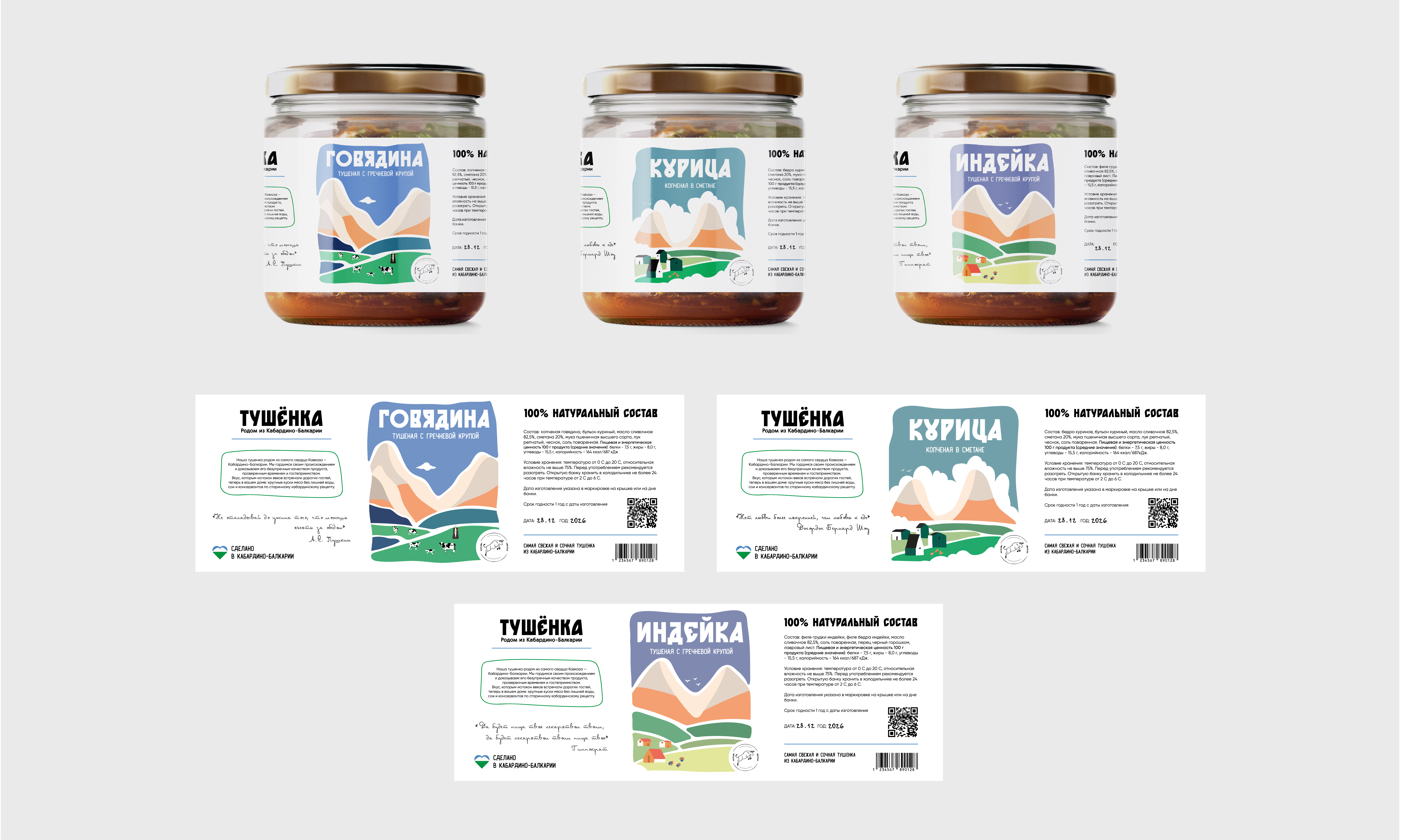 Уникальный дизайн тушенки, произведенной в Кабардино-Балкарии, направлен на создание оригинального внешнего вида, обеспечивающего преимущества перед аналогичной продукцией. Использование уникальных пейзажей, характерных для культурного наследия Кабардино-Балкарского региона, придает упаковке выразительность и эмоциональность восприятия.